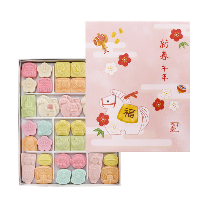 干支とおめでたい形のお干菓子を詰め合せた新春シリーズは毎年ご好評をいただいています。