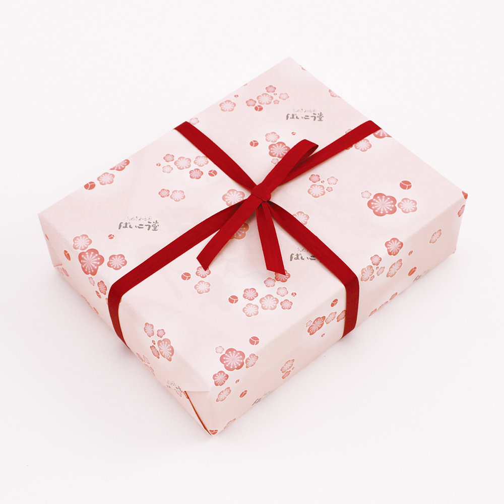 こちらの商品は、梅の花をあしらった専用包装紙にお包みいたします。