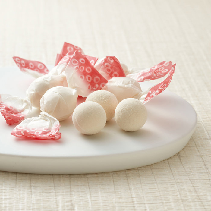 紅白のおめでたい半円のお干菓子を和紙で包んだ商品です。